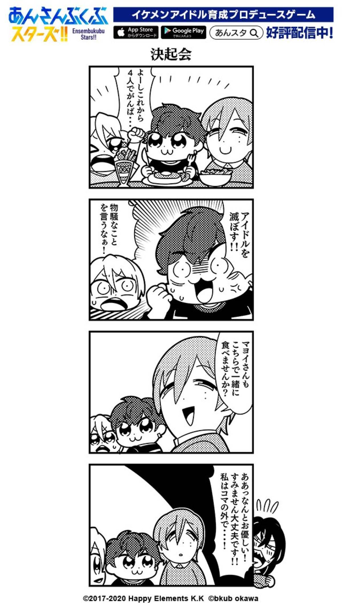 公式 Tvアニメ あんさんぶるスターズ Dvd第8巻発売記念 各巻特典の特製ブックレットに掲載されている 大川 ぶくぶ先生による描き下ろし4コマ漫画ですが 最終巻の発売を記念して第十二話の番外編を書いていただきました この機会にぜひアニメも